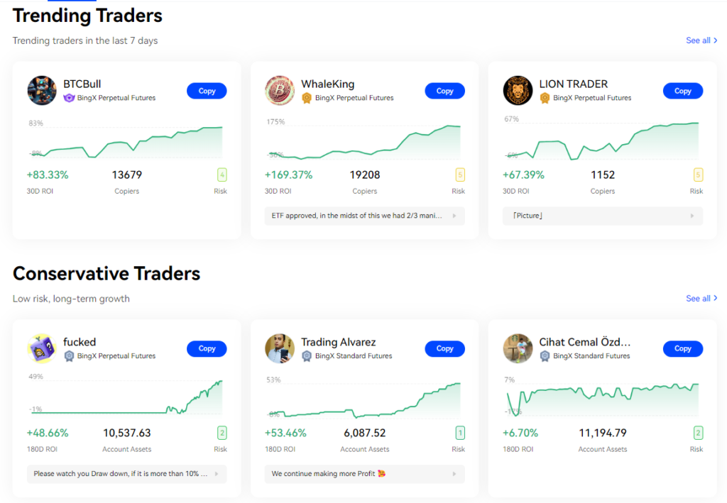 Copy-trading champs: Most exchanges treat copy-trading like an afterthought. BingX? It’s their whole thing. You get clear stats on the best traders, so you can tailor your strategy based on what works. It’s no wonder this is how they built their reputation.