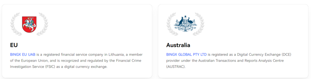 In the European Union, BingX is regulated by the Financial Crime Investigation Service (FCIS) in Lithuania, allowing it to offer a range of services including spot and derivatives trading. Down under in Australia, it’s registered as a Digital Currency Exchange provider, aligning with the country’s financial regulations.