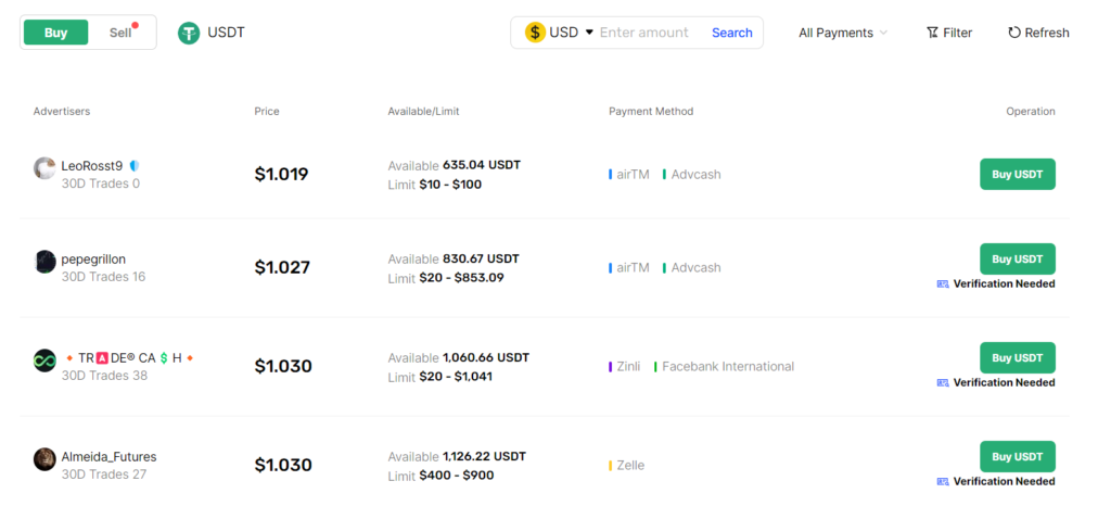 - P2P (Peer-to-Peer): Engage in direct cryptocurrency trading with other BingX users through the Peer-to-Peer market. This avenue expands your options with additional fiat currencies and over 300 payment methods, including Wise, Payeer, Advcash, Zelle, and more.