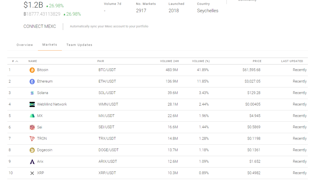 MEXC boasts over $1.2 billion in trading volume and provides substantial liquidity, thus facilitating traders to discover optimal pricing and expedite trade executions. The platform accommodates an extensive selection of cryptocurrencies, over 2,000 in total, and offers more than 2917 trading pairs. Compared to other well-known exchanges like Binance, Coinbase, OKX, and Kraken, which typically list between 200 and 800 coins, MEXC stands out with its broad range of available cryptocurrencies.
